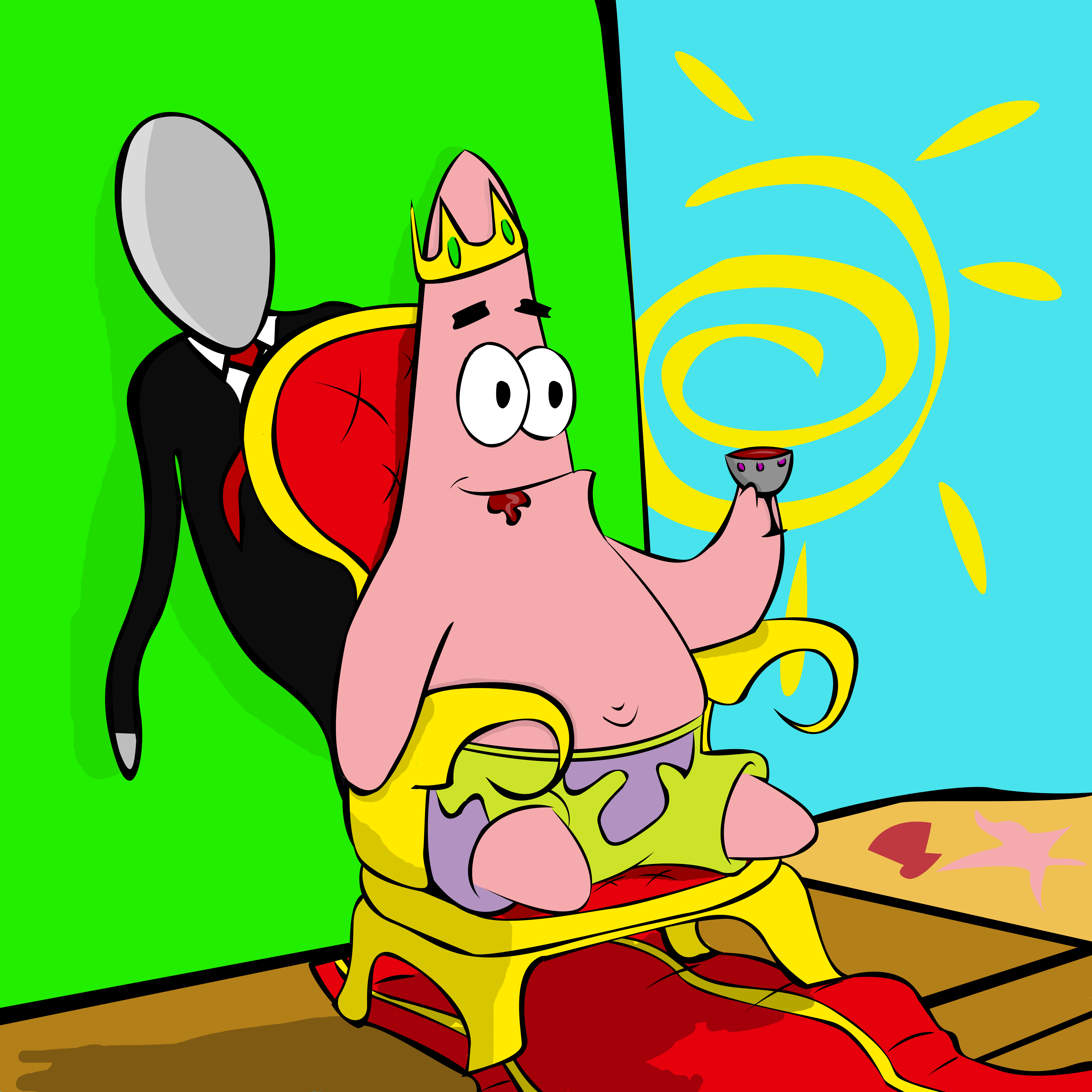 蟹老板的死对头,《海绵宝宝》的主要反派角色。由1%的邪恶和99%的热毒气(Hotgas)组成。只有一只眼睛,时常刺痛(因为他忘记眨眼)。快餐店"海之霸餐厅(Chum Bucket)"的老板。他的妻子是电脑,名叫凯伦。为了让自己的餐厅生意兴隆,一直偷取蟹堡王著名料理"美味蟹堡"的祖传秘方,却从未成功,最大的希望是统治全世界。